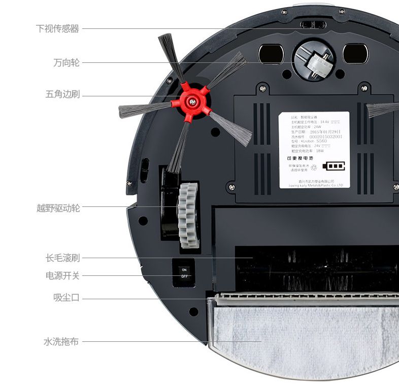 掃地機(jī)構(gòu)造來看,大多數(shù)的掃地機(jī)采用框架式結(jié)構(gòu)。從下至上分隔成三個(gè)空間:第一層裝配各運(yùn)動部件的驅(qū)動電機(jī)、傳動機(jī)構(gòu);第二層為垃圾存儲空間;第三層裝配機(jī)器人控制系統(tǒng)、接線板、電源電池、開關(guān)等。
