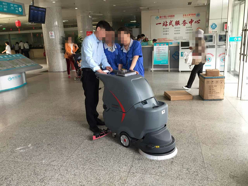 醫(yī)院面積大,人流量大,因此傳統(tǒng)的保潔方法,掃把加拖把,這樣的保潔方法既沒有效率,又不美觀,往往很多時候還影響病人的休息,更遭到一些病人的投訴等問題。傳統(tǒng)的保潔方法顯然已經(jīng)不適用于醫(yī)院保潔工作了,所以現(xiàn)在很多大型醫(yī)院里,更多的是使用手推式洗地機(jī)來做保潔了。
