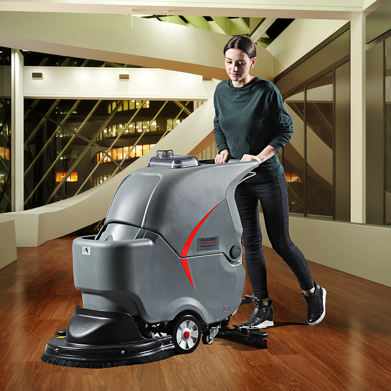 1、手推式洗地機:傳統的手推式洗地機是洗地機出現在的最早的一款洗地機產品,傳統的手推式洗地機擁有最基本的清洗功能,手推式洗地機更適合用于面積比較小的場所,如餐廳、食堂等。