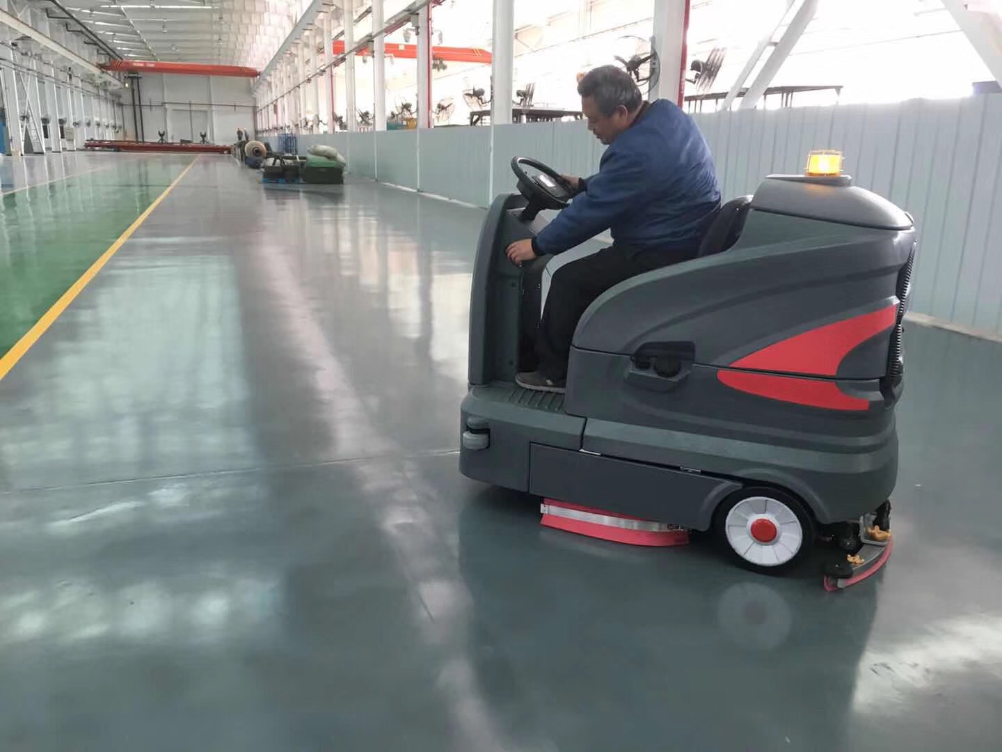 駕駛式洗地機可以將地下車庫的灰塵徹底清洗干凈,而且不會殘留水漬,避免二次污染,可以大大地減少浮塵。