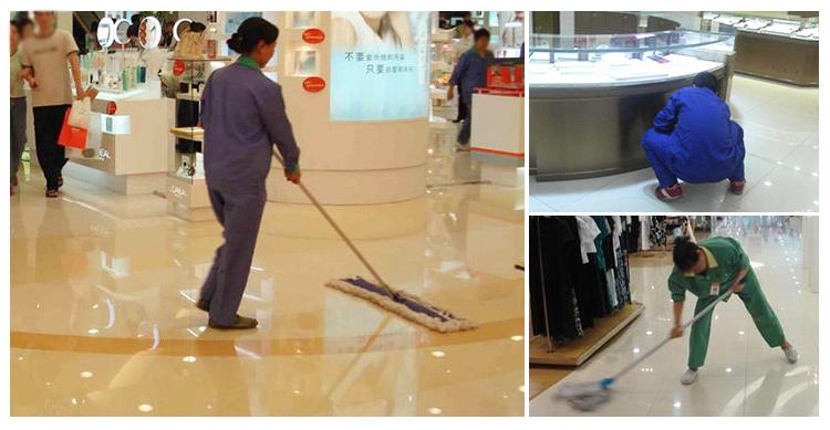 (2)商場客流量大,作業(yè)時要十分注意掃帚塵推等工具不能碰到顧客,不要影響顧客購物,不要引起顧客反感。