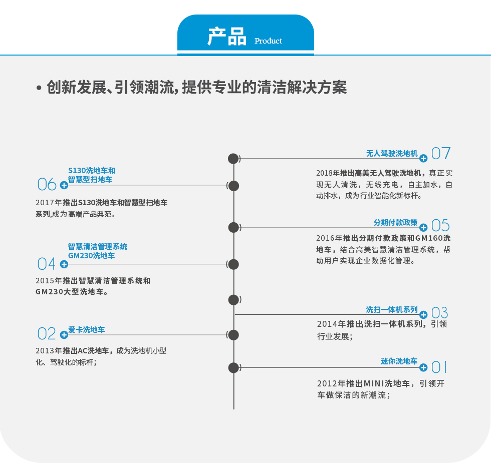 高美能夠?yàn)楦黝惿虡I(yè)或工業(yè)區(qū)域,提供專業(yè)的清潔解決方案。公司主要產(chǎn)品為:洗地機(jī)系列、掃地車系列、洗掃一體機(jī)系列、商業(yè)機(jī)系列。產(chǎn)品遠(yuǎn)銷北美、歐洲、澳洲、中東和東南亞等世界各地,深受廣大用戶的歡迎和信賴。