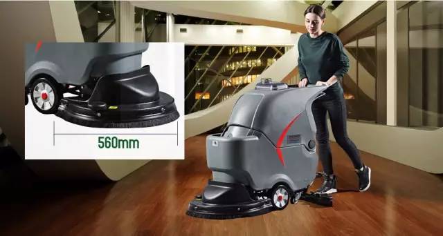 大 刷 盤 智慧型洗地機(jī)中唯一一款手推式機(jī)器,特別適合500㎡—2000㎡場所使用;560mm大刷盤比普通機(jī)器高出25%的工作效率。