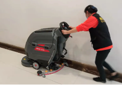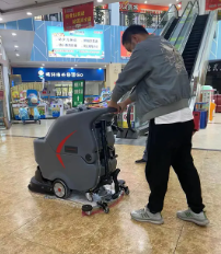 手推式洗地機(jī):體積小、靈活輕便,適用于清潔狹窄處和角落區(qū)域的地面,如各樓層的購物區(qū)、通道等。工作人員只需控制清潔方向和速度,適合節(jié)假日人流擁擠時使用。