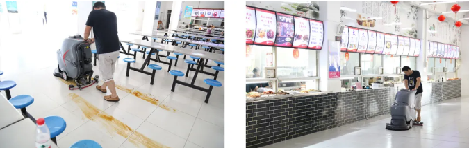 食堂,衛(wèi)生條件最為嚴(yán)苛的區(qū)域,多為瓷磚、水磨石等地面,易產(chǎn)生飯菜、湯汁、油污等殘留,不易清洗,易留異味。