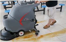 對(duì)于地面的嚴(yán)重油污,只要在洗地機(jī)清水箱加入一定比例的清潔劑,就可以有效除去油污,快速潔凈。