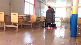 對(duì)于地面的消殺工作,可以在飯點(diǎn)之前和之后,將消毒液和清水按照一定的比例融合后,加入洗地機(jī)清水箱,對(duì)地面進(jìn)行單清洗作業(yè)(抬起吸水扒),約30分鐘后,抬起刷盤,放下吸水扒,開啟單吸模式,完成對(duì)地面的消殺工作。