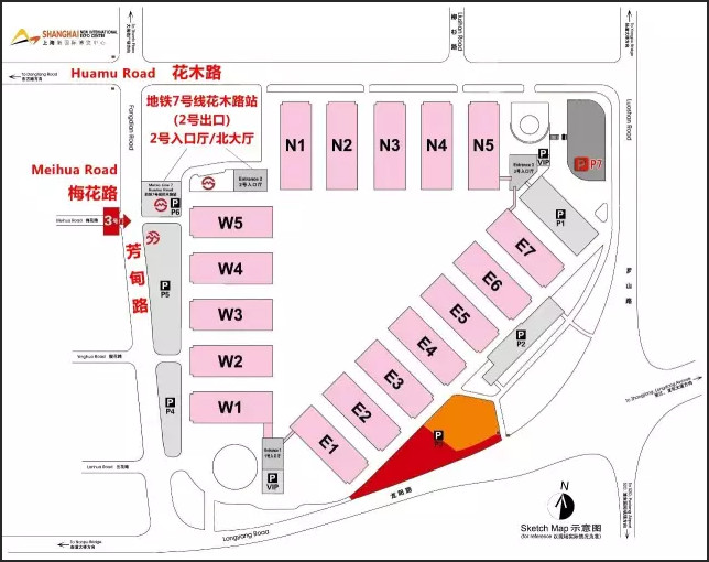 地鐵:地鐵7號線——花木路站,2號口出站,步行約5分鐘,到達上海新國際博覽中心2#入口廳(北大廳)
