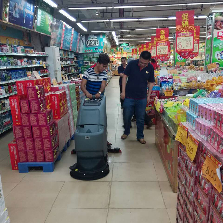 GM50B手推式洗地機為常州世紀(jì)華聯(lián)超市增添一抹亮色。