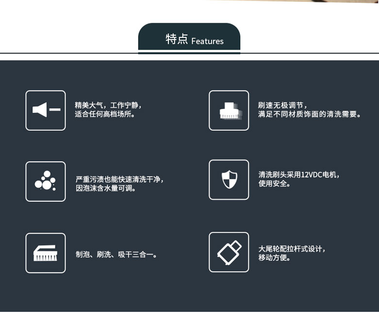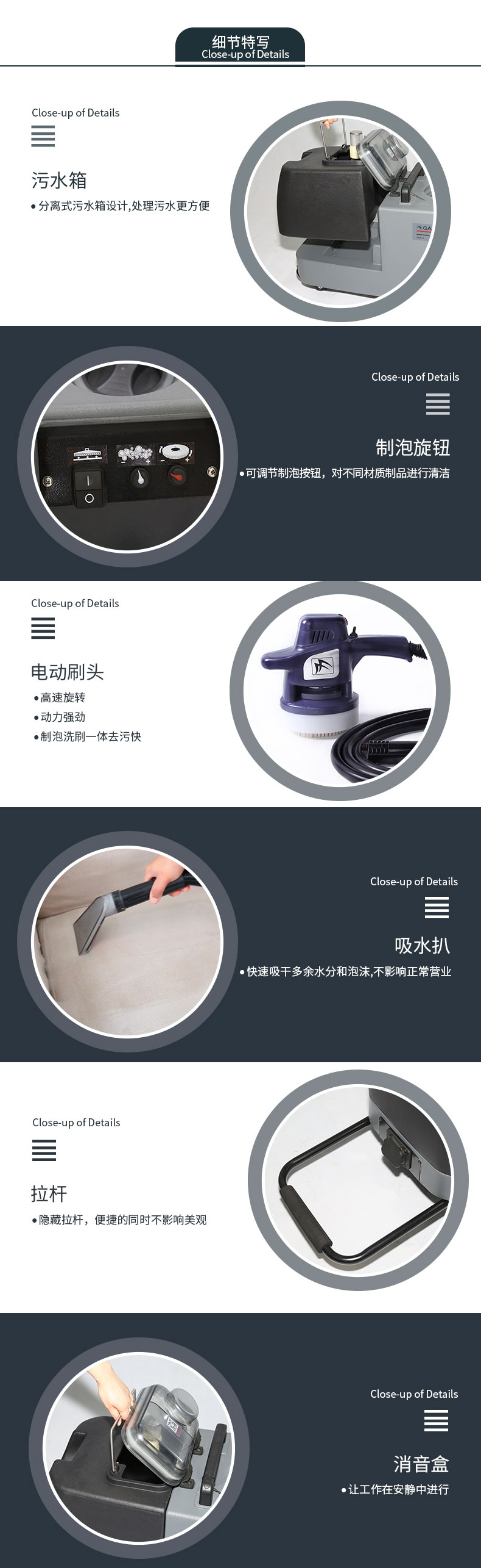 泡沫制造,電動刷洗、真空抽吸三合一,是清洗各種布藝家具和裝飾的專業(yè)設(shè)備。適用賓館酒店等場所。
