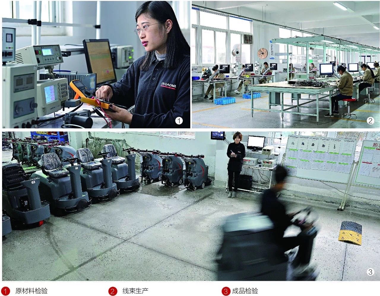 廠房面積15000㎡,員工202人的高美規(guī)格龐大,支撐起每月600-700臺(tái)的洗地機(jī)倉(cāng)儲(chǔ)周轉(zhuǎn),且各項(xiàng)指標(biāo)皆中國(guó)領(lǐng)先:從進(jìn)貨檢驗(yàn)(IQC)到成品(FQC),實(shí)施全程品質(zhì)管理監(jiān)測(cè),提前預(yù)警;關(guān)鍵零部件和整機(jī)激光打碼,產(chǎn)品操作流程全程視頻錄像,結(jié)合流水線生產(chǎn)方式和ERP管理系統(tǒng),從原材料進(jìn)料到成品出庫(kù)全程可追溯。實(shí)現(xiàn)管理可視化、標(biāo)準(zhǔn)化、流程化。